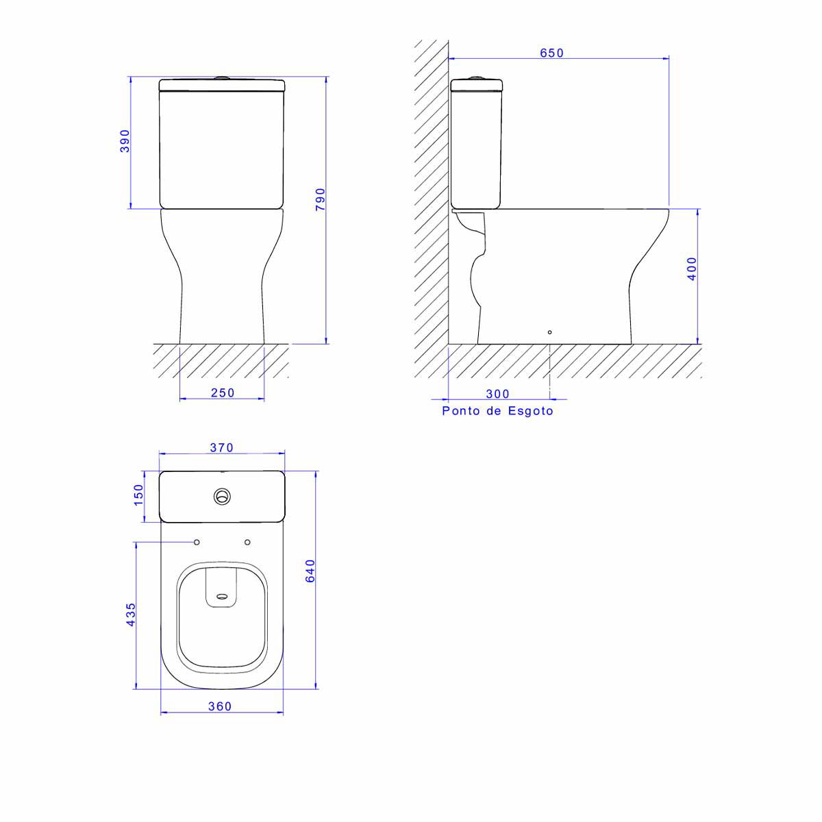 Para fazer a fixação da Bacia para Caixa Acoplada Deca Axis Barbante (Código: P.470.26) no banheiro e lavabo, verifique o nivelamento do piso. Já para ter certeza que o vaso sanitário cabe no espaço disponível no ambiente, confira as dimensões abaixo: