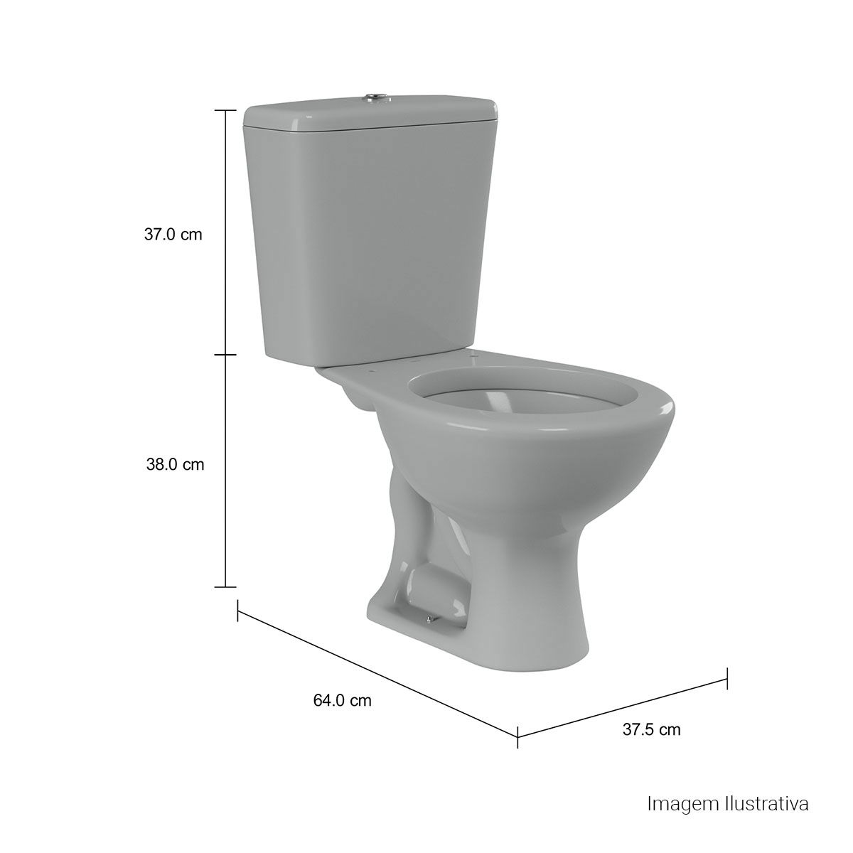 A Bacia para Caixa Acoplada Izy Cinza (Cód. P.111.87) apresenta um tamanho compacto, sendo ideal para banheiros e lavabos com pouco espaço. As medidas do produto são as seguintes: