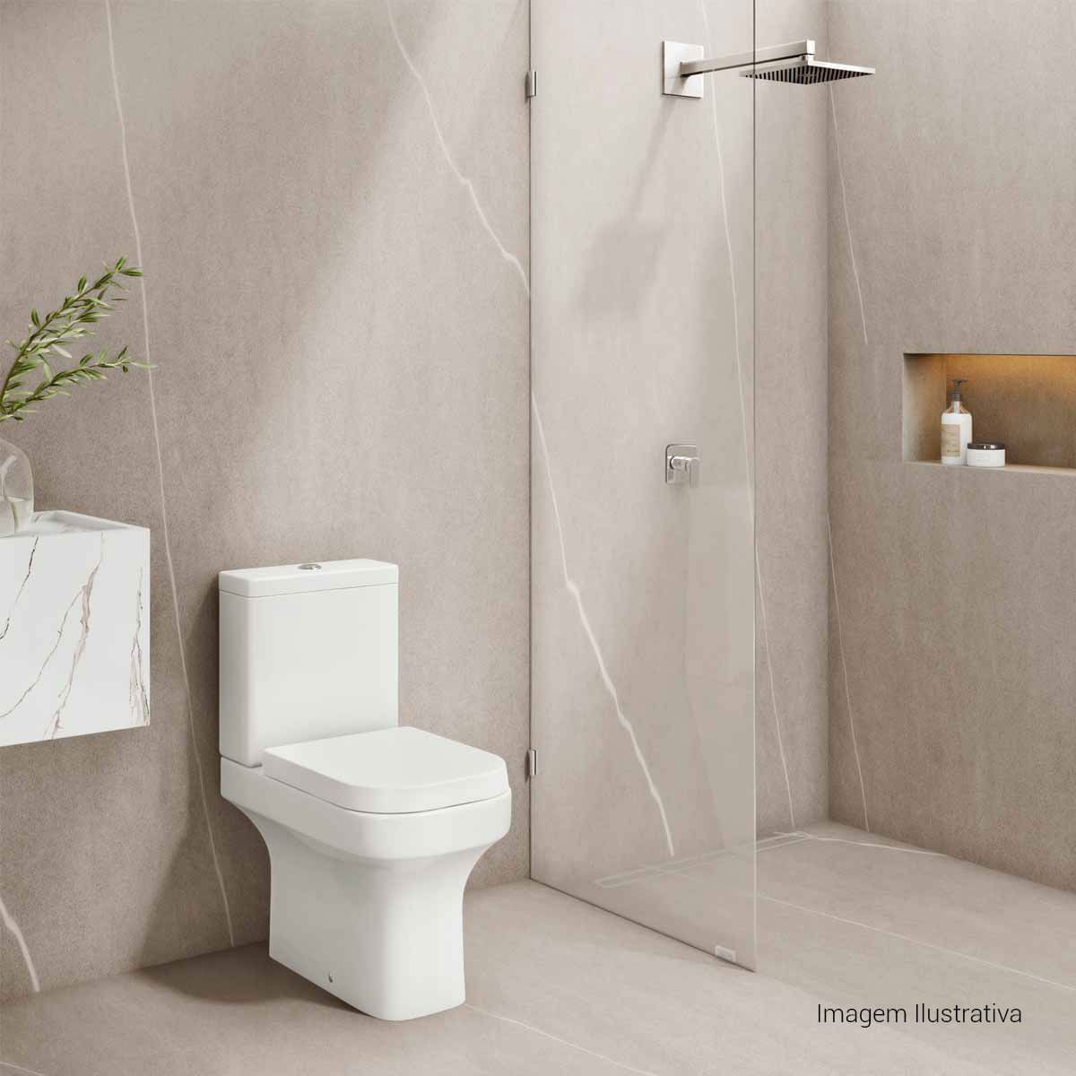 A Bacia para Caixa Acoplada Deca Piano Branco (Código: P.330.17) não inclui a caixa acoplada. Para uma instalação completa, conforme a imagem ilustrativa, adquira separadamente: