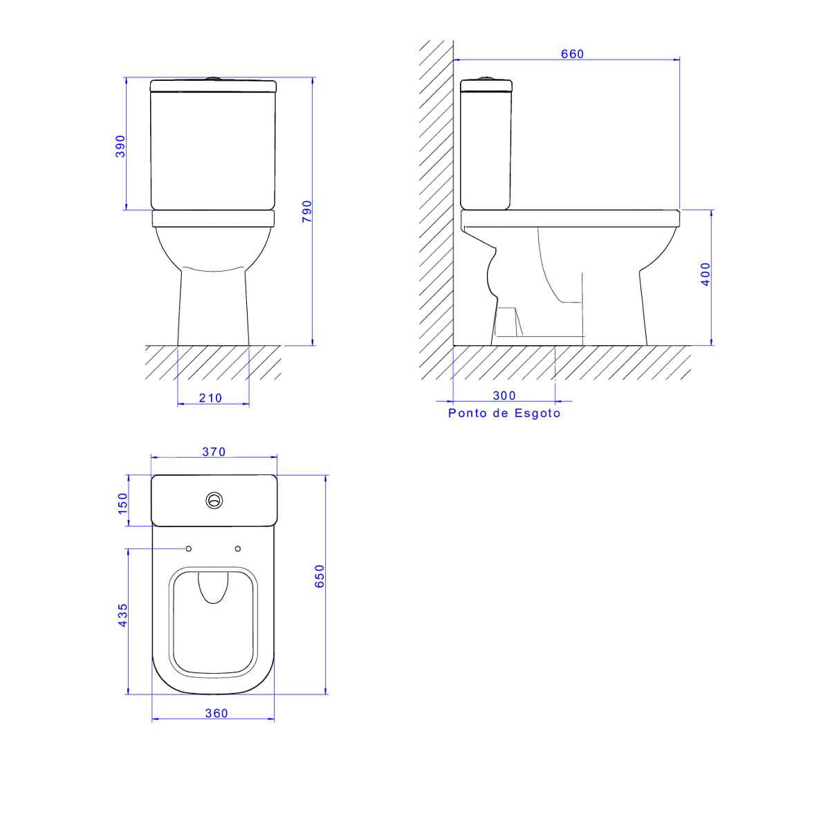 Para garantir que a Bacia para Caixa Acoplada Deca Quadra Creme (Código: P.210.37) se encaixe perfeitamente no seu espaço, verifique as seguintes medidas: