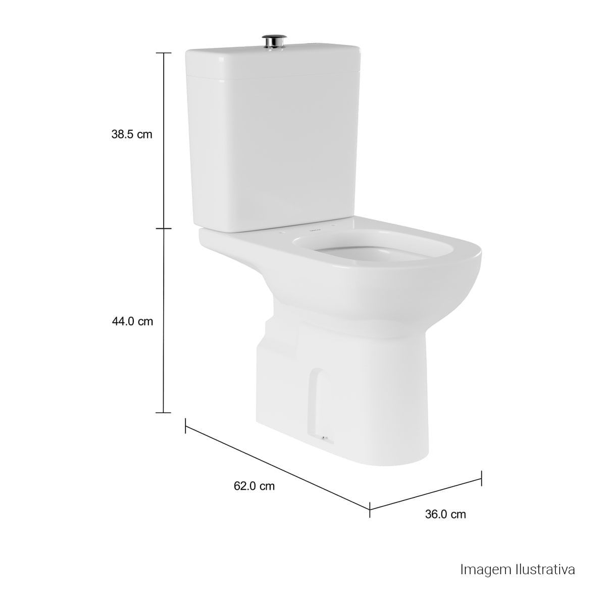 Ao adquirir a Bacia para Caixa Acoplada Vogue Plus Conforto Branco, é importante considerar que o assento e a caixa acoplada não estão inclusos no produto. Para completar a instalação conforme a imagem ilustrativa, adicione ao carrinho a Caixa Acoplada (CDC.01F.17). Também pode ser necessário adquirir o Kit de Instalação para Bacia com Caixa (1200.C.KIT.PCD).