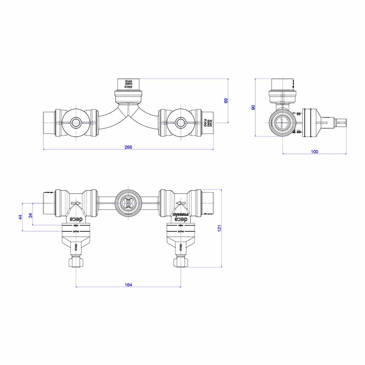 Base de misturador para chuveiro com entrada horizontal para PPR 25MM