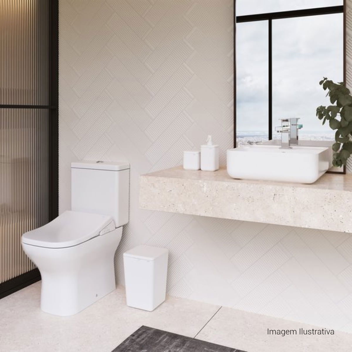 Caixa acoplada com sistema de descarga com tecnologia Hydra Duo, com dois botões: descarga completa: 6 litros (limpeza total) e descarga com volume reduzido: 3 litros (troca de líquidos). Garantindo assim uma economia de água de até 60%.