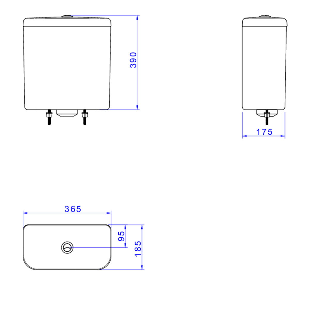 Caixa acoplada com sistema de descarga com tecnologia Hydra Duo, com dois botões: descarga completa: 6 litros (limpeza total) e descarga com volume reduzido: 3 litros (troca de líquidos). Garantindo assim uma economia de água de até 60%.
