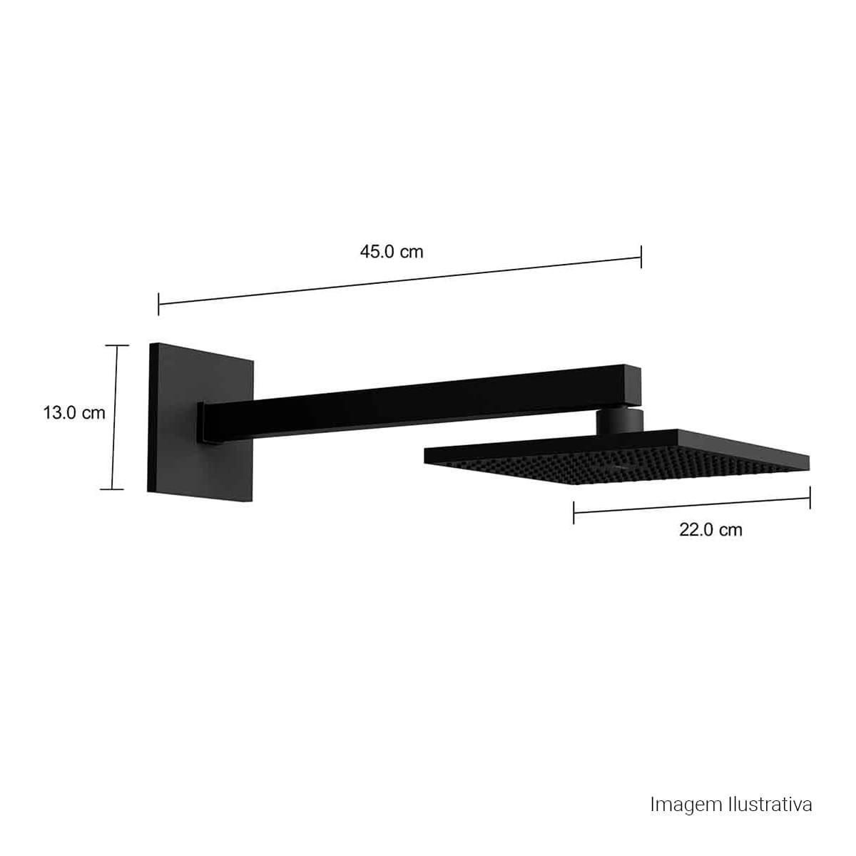 Chuveiro Deca de Parede com Tubo | Quadrado - Black Matte