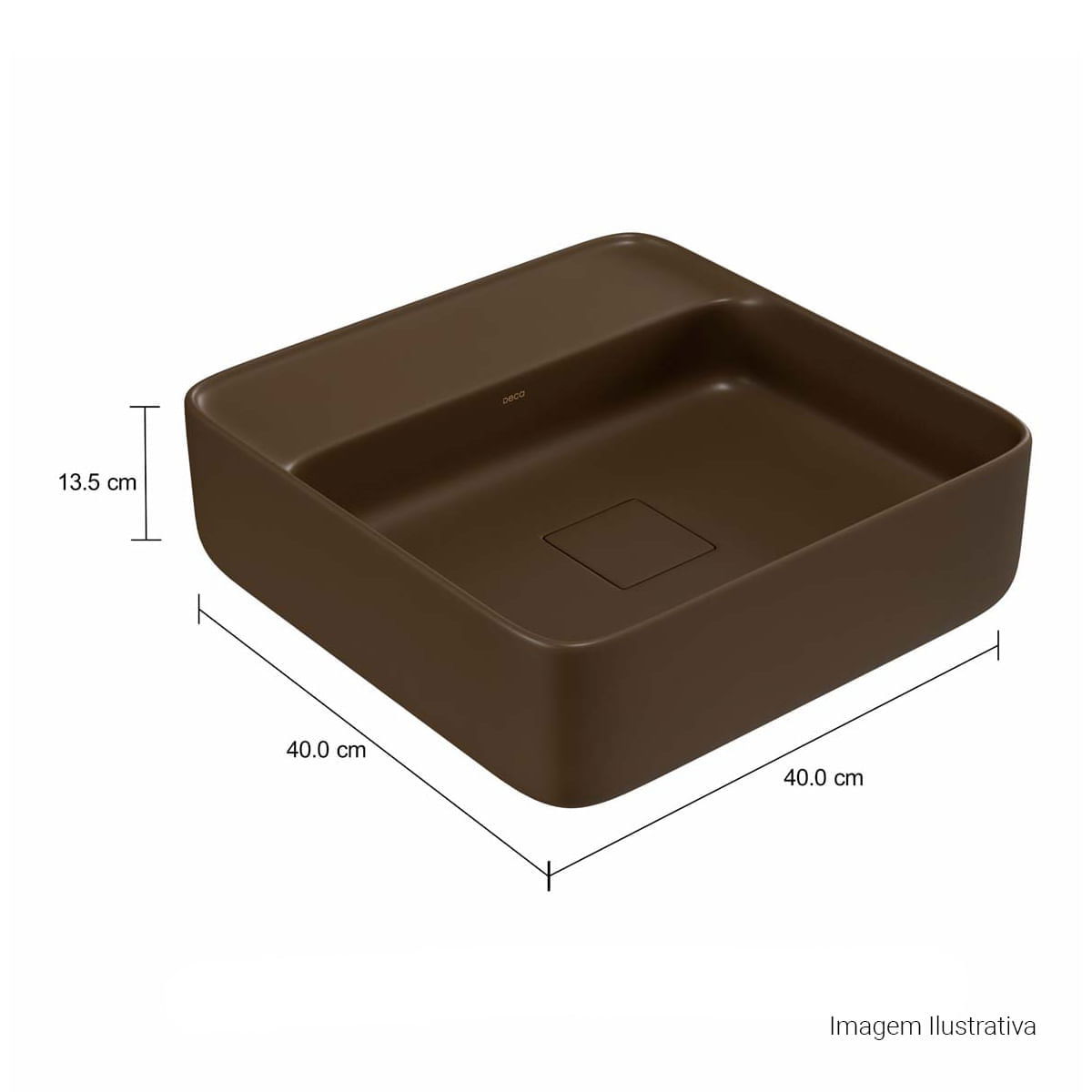Para garantir uma instalação eficiente, meça os espaços no seu banheiro e lavabo antes de realizar a compra. A seguir, veja as especificações técnicas detalhadas da Cuba de Apoio com Mesa Quadrada 40cm Deca Slim Marrom Fosco (Código: L.11040.M.22):
