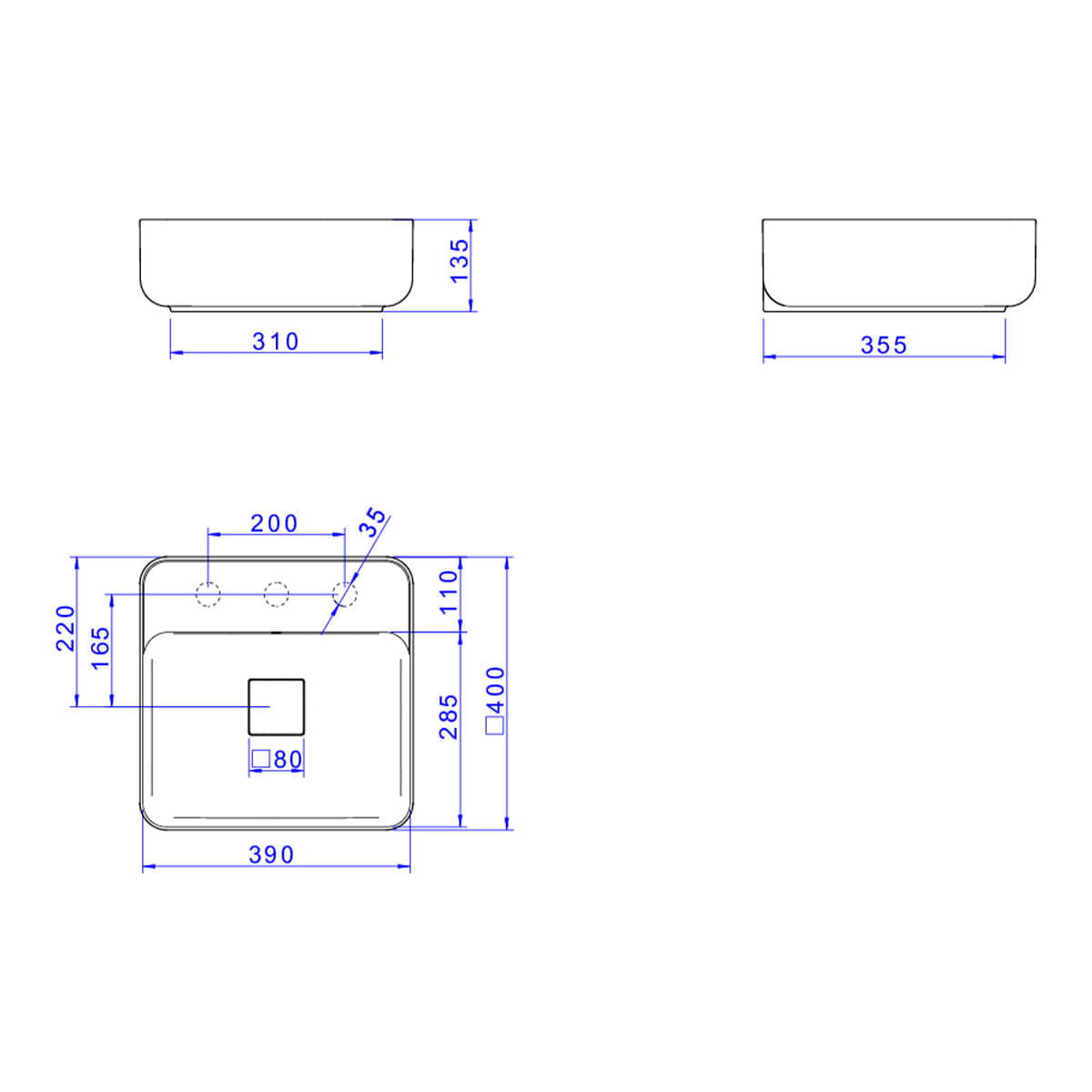 Cuba de Apoio com Mesa Quadrada 40cm Deca Slim Soft Antracite