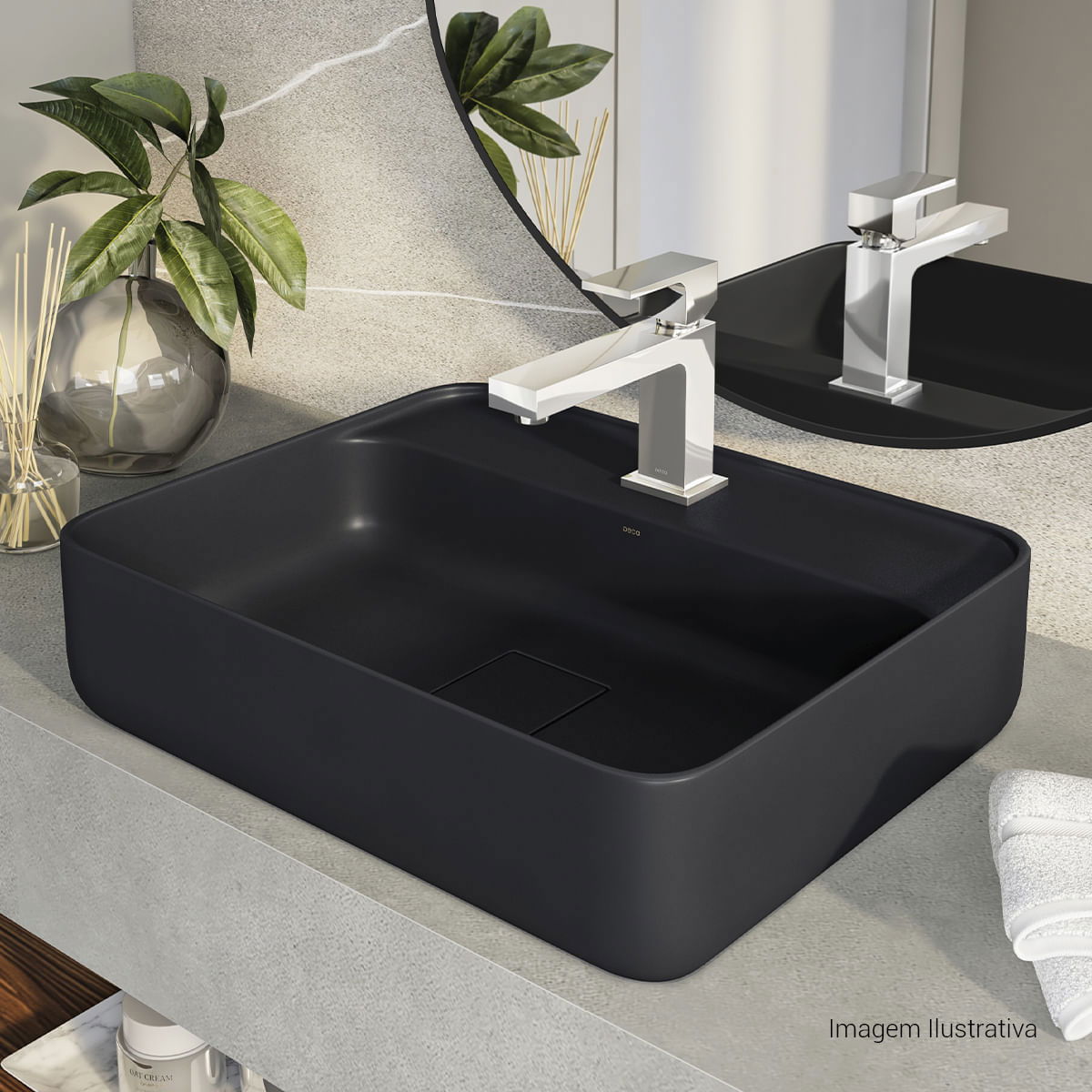 Cuba de Apoio com Mesa Retangular 50cm Deca Slim Ébano Fosco