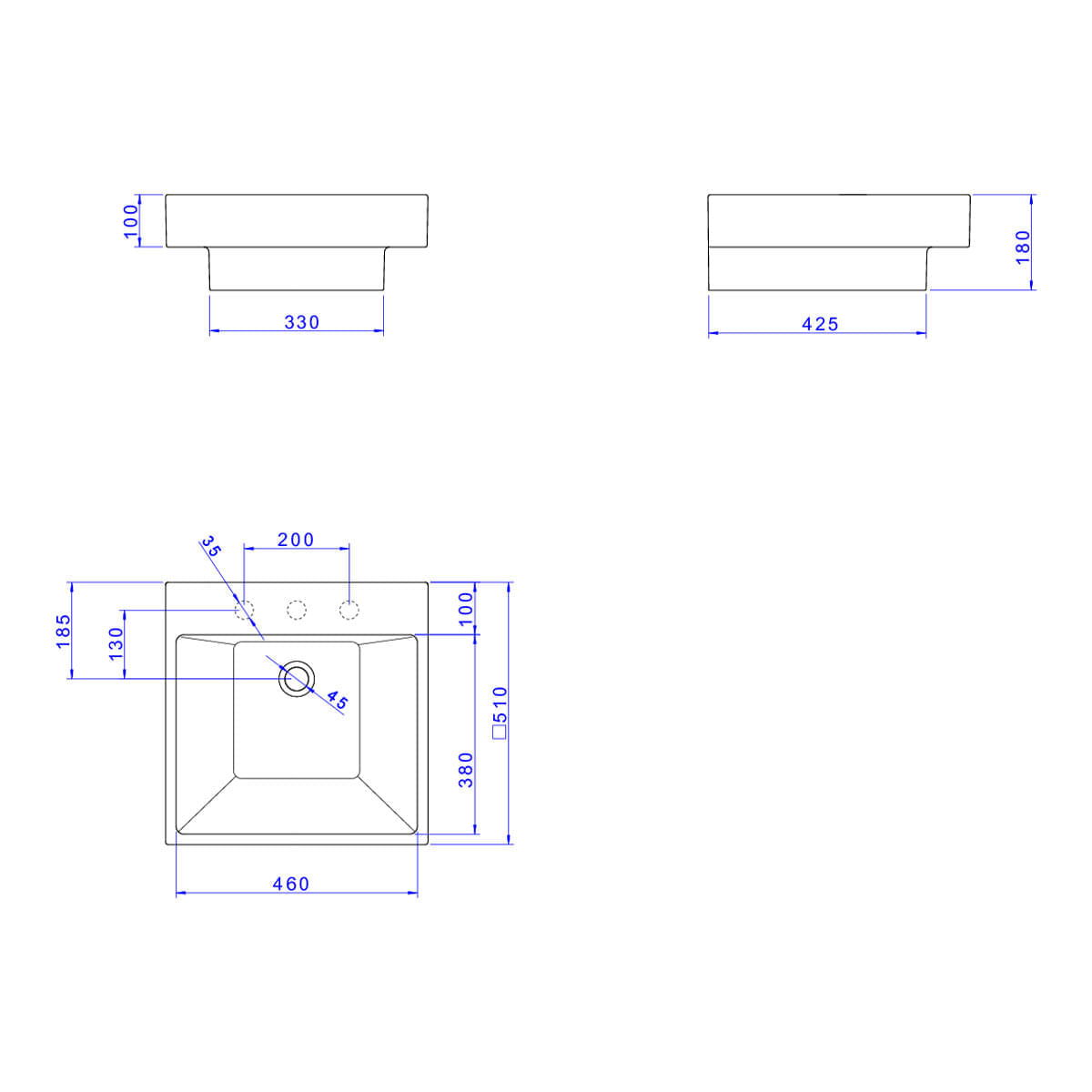 Cuba de Apoio/Sobrepor Deca com Mesa Retangular 500mm - Branco