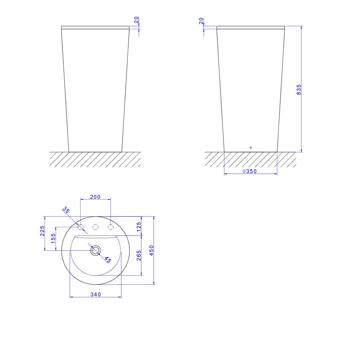 - Largura: 45 cm