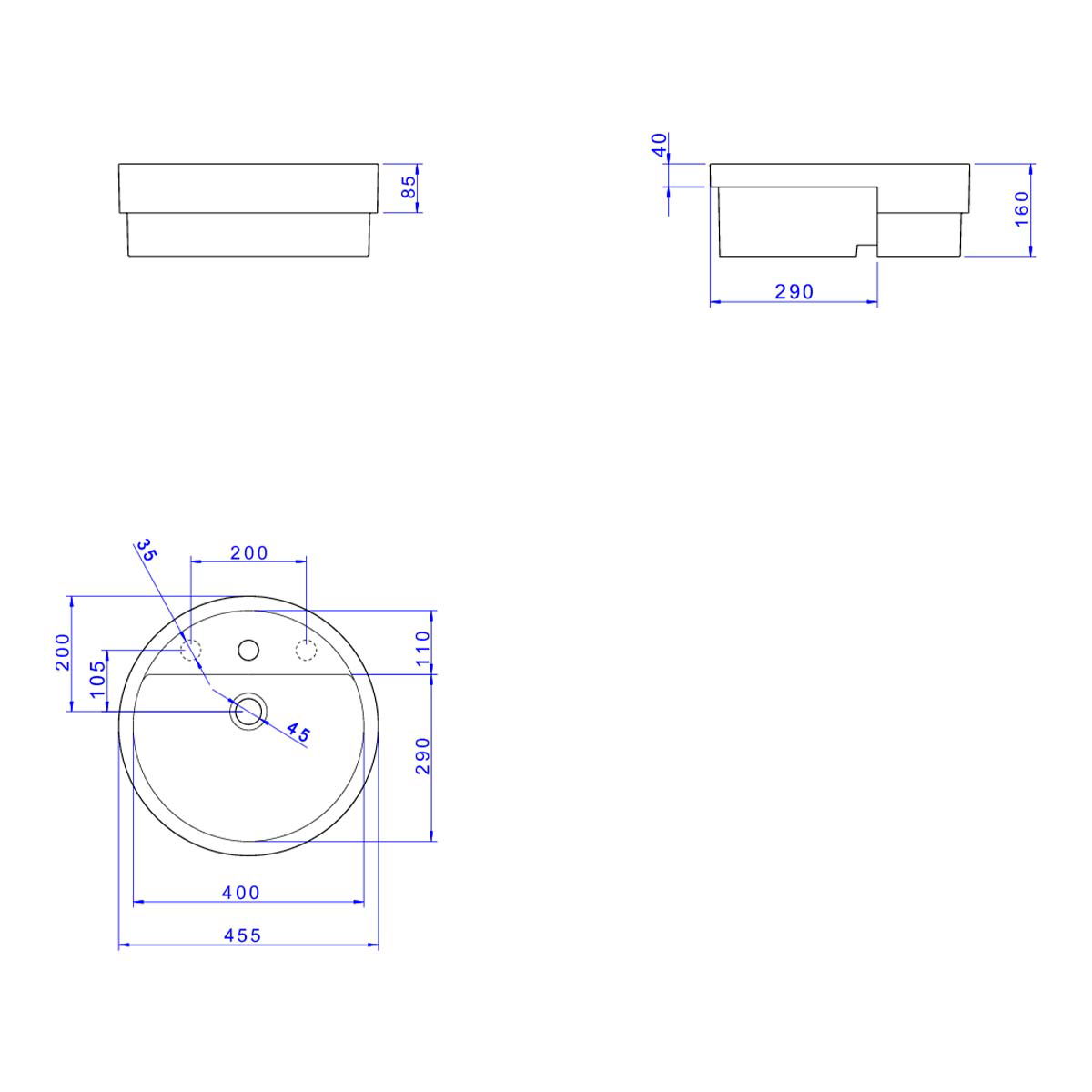 Cuba com Deck com 3 furos apontados, possível utilização de torneiras, monocomandos e misturados de mesa.