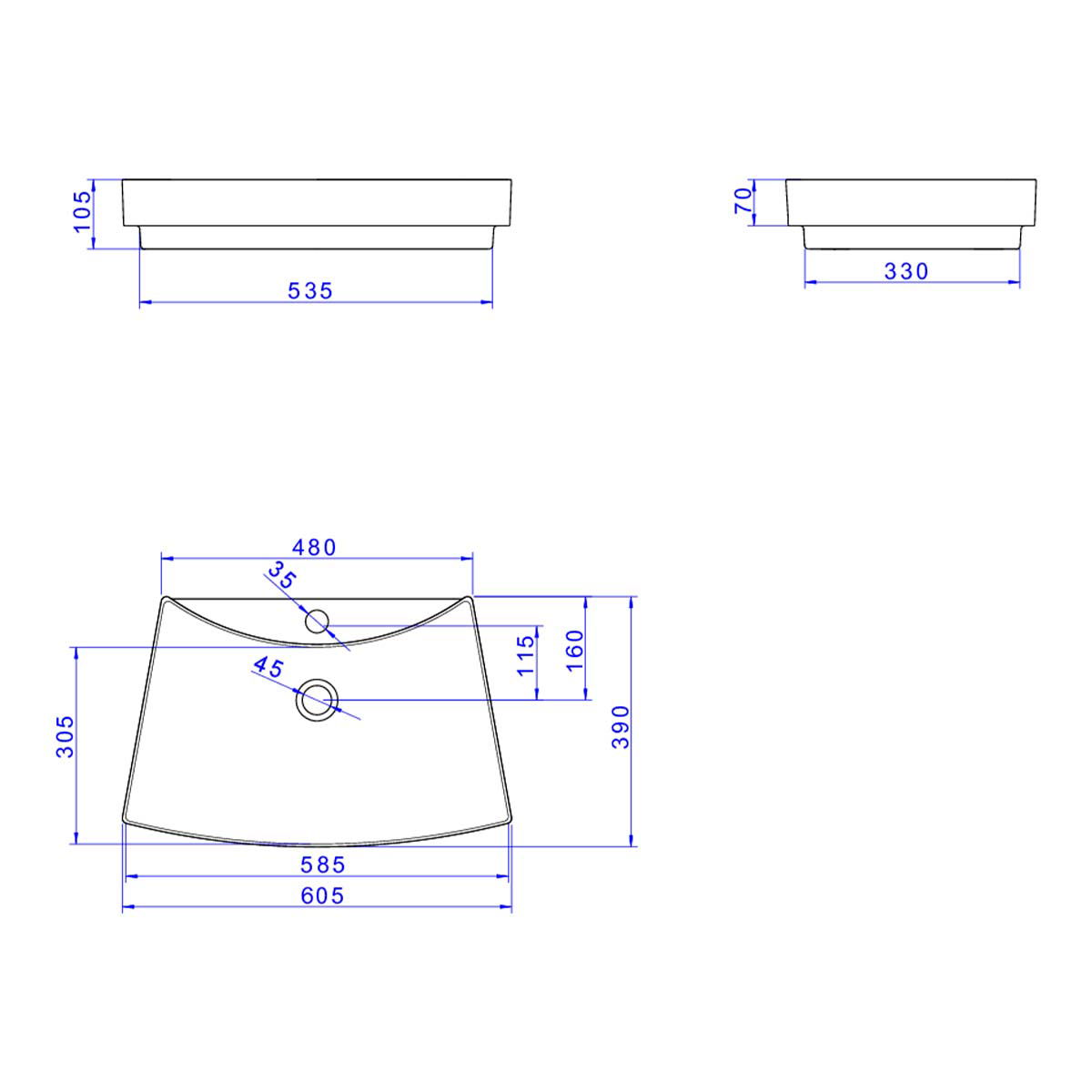 Cuba com apenas um furo para instalação de metais de mesa, permitindo ouso de monocomandos e torneiras.
