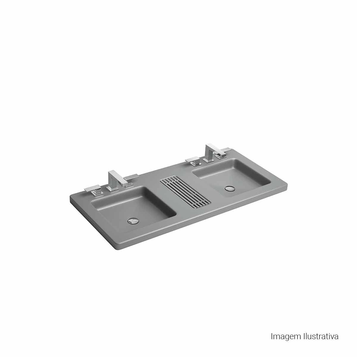 Cuba de Sobrepor Deca Dupla com Saboneteira Grelha - Cinza Fosco e Cromado