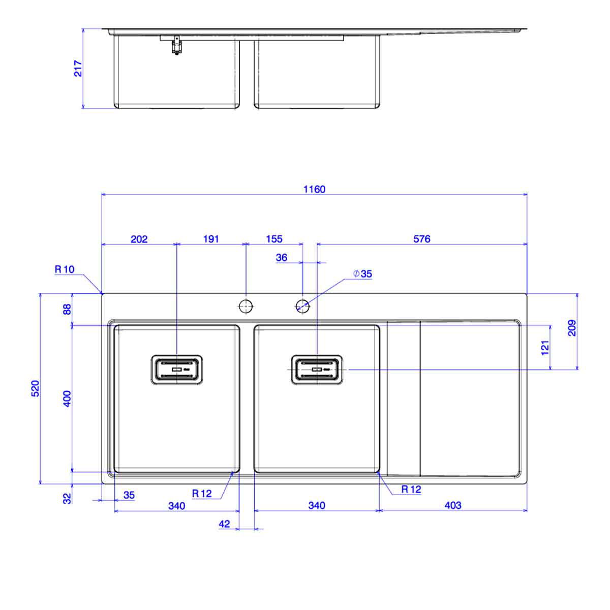 Cuba Dupla Deca para Cozinha em Inox 116cm | Wish