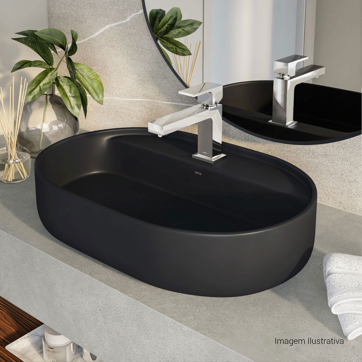 Cuba Oval de Apoio com Mesa 60 cm | Cubas Slim - Ébano Fosco