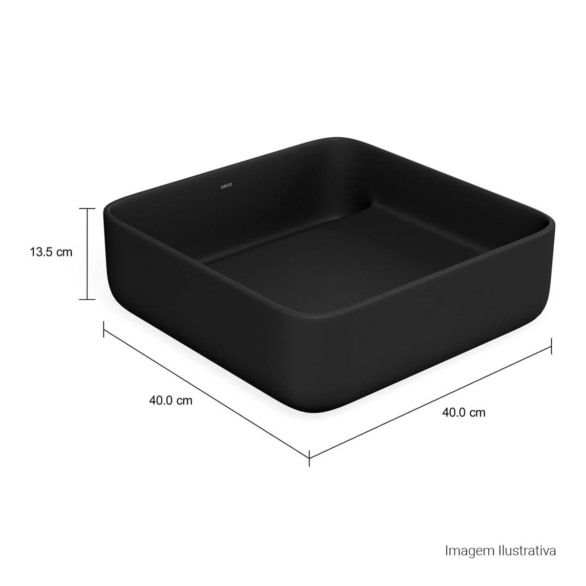 Cuba Quadrada de Apoio com Válvula Oculta 40cm - Ébano Fosco Cubas Slim