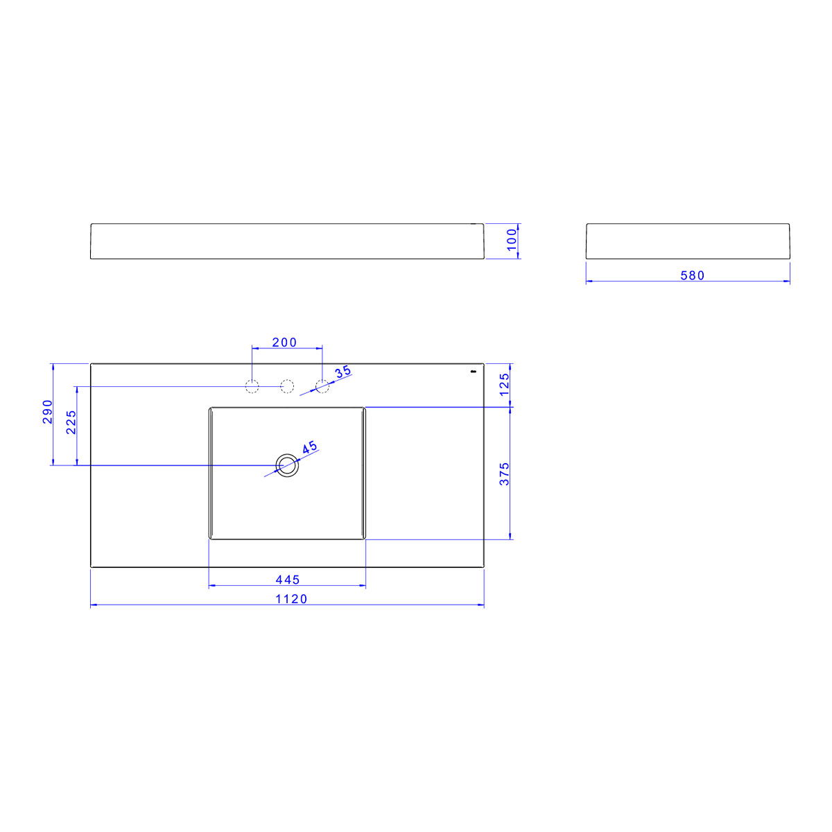 Cuba Retangular de Apoio com Mesa 112cm - Ébano Fosco Retângulo
