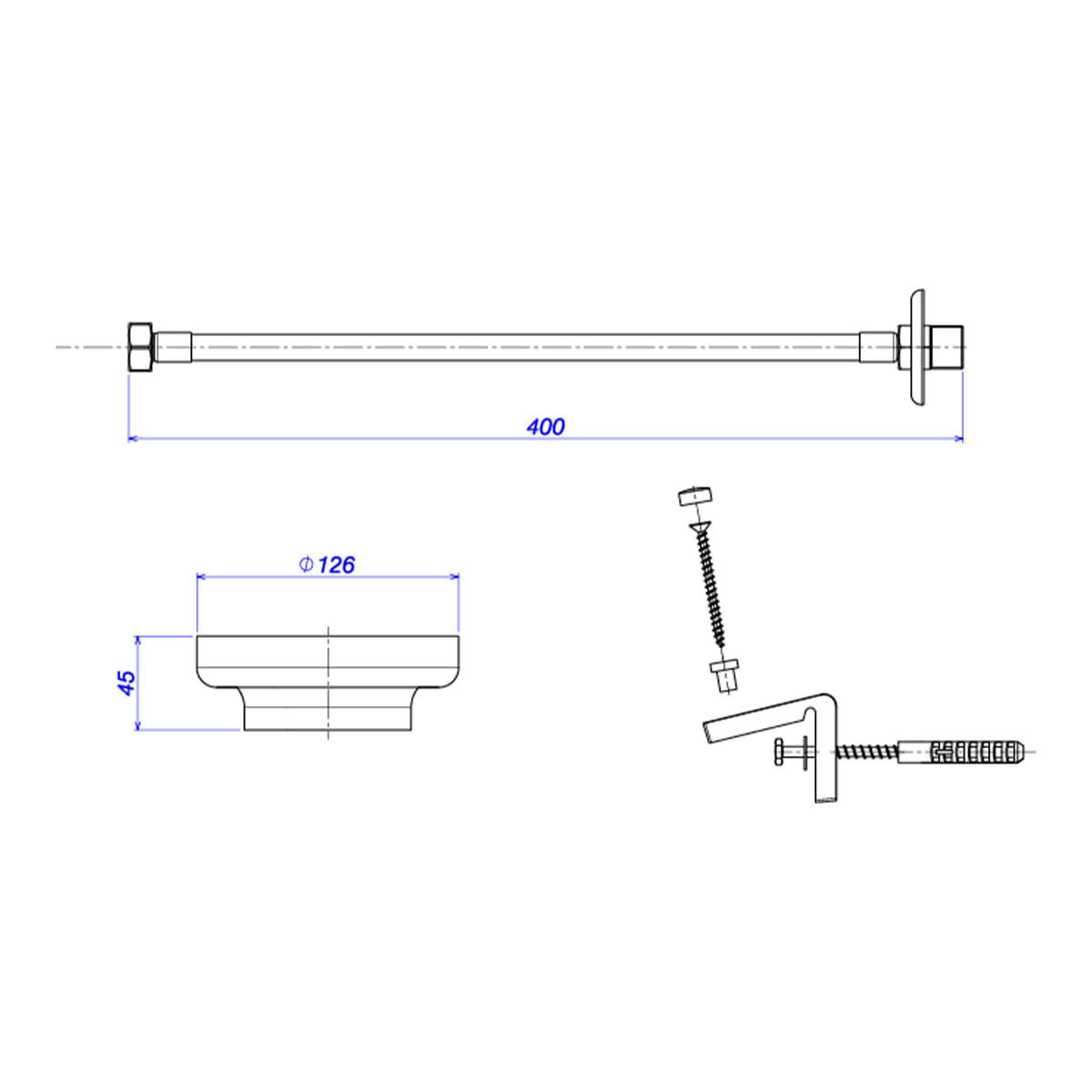 2 parafusos de fixação sextavados (aço inox),