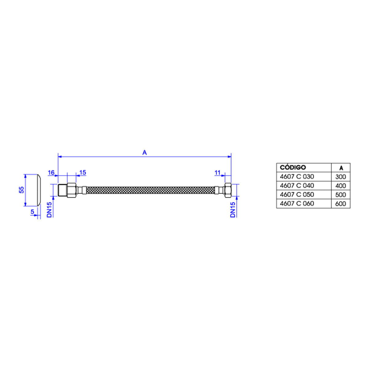 Para garantir máxima eficiência na instalação, é necessário saber as medidas da Ligação Flexível Malha de Aço 30cm Deca Cromado (Código: 4607.C.030). Confira abaixo:
