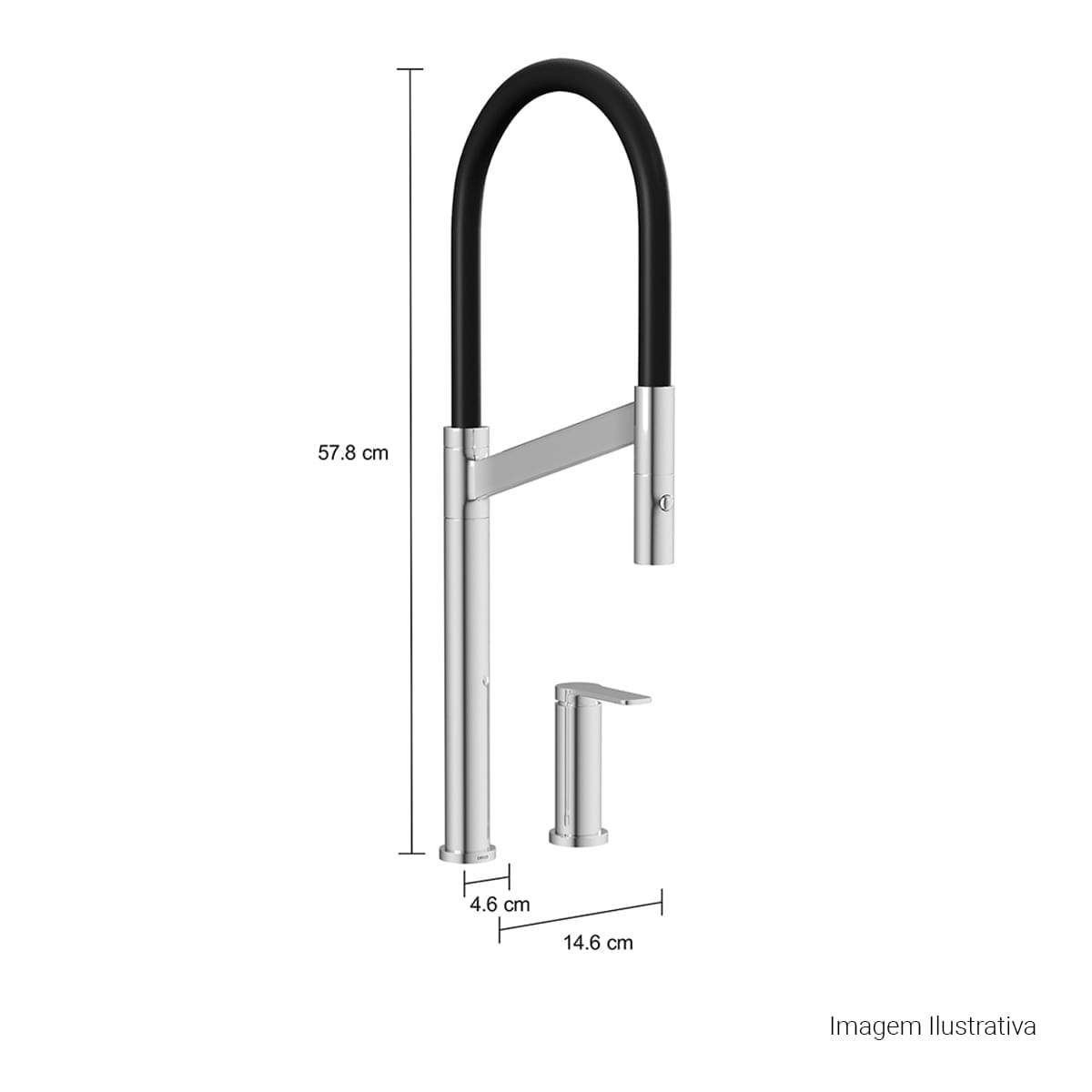 Misturador Monocomando Deca de Mesa Bica Alta para Cozinha | Colore - Cromado e Preto